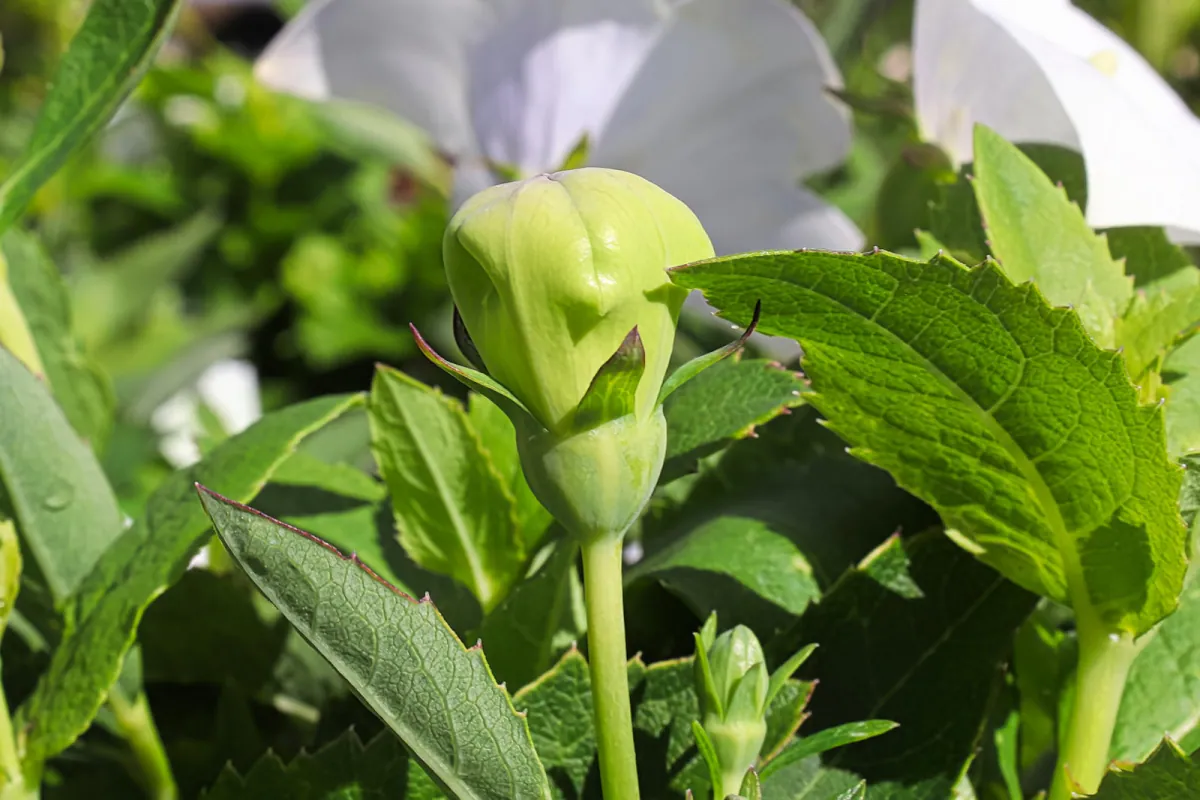 - Hakone White - białe kwiaty półpełne. Wysokość rośliny osiąga 50 cm.