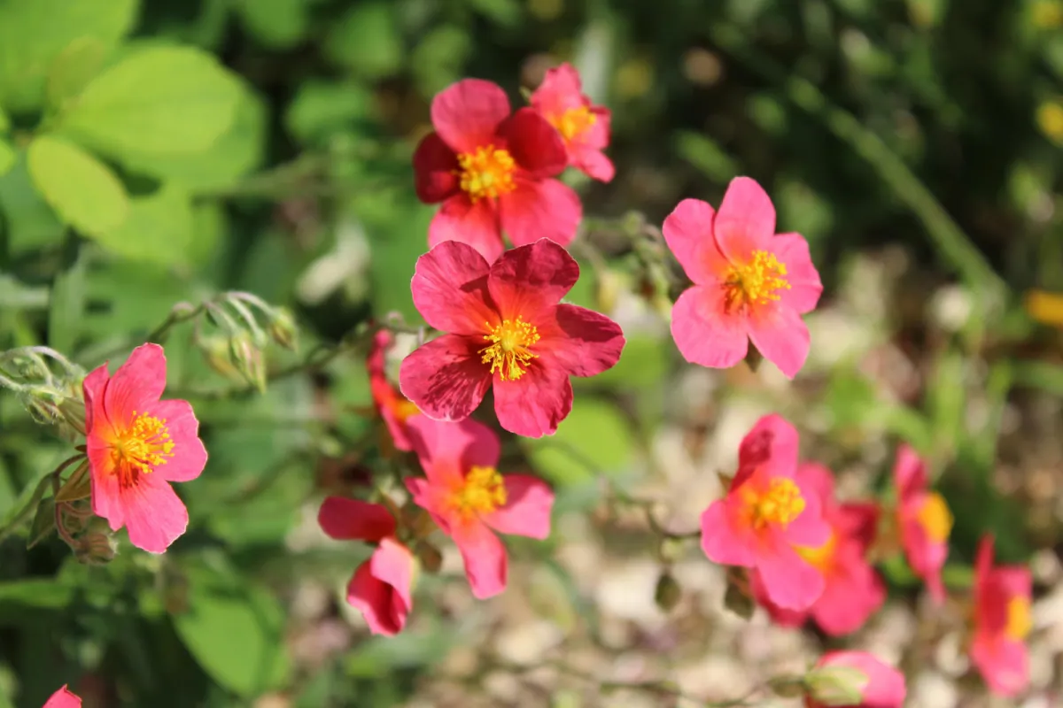 Posłonek rozesłany (Helianthemum nummularium) to kolejna z moich propozycji dla właścicieli ogrodów o piaszczystej glebie. Posłonek rozesłany to zimozielona bylina. Osiąga wysokość od 15 do 30cm, a jej płożące się łodygi mogą rozrastać się na szerokość do 90cm, tworząc efektowne kobierce zieleni. Posłonek kwitnie od późnej wiosny do wczesnego lata, obsypując się mnóstwem kwiatów, które, choć żyją tylko jeden dzień, są na tyle liczne, że przez dwa miesiące roślina wygląda jak pokryta barwnym dywanem. Kwiaty mają średnicę około 2,5cm i mogą przybierać różne odcienie żółci oraz pastelowego różu, przypominając kształtem róże.