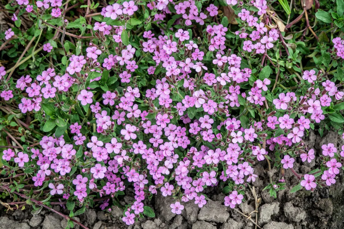 Mydlnica bazyliowata (Saponaria ocymoides) to nasza piąta propozycja rośliny na piaszczyste działki i ogrody. Urocza, półzimozielona bylina, która świetnie sprawdzi się jako roślina okrywowa. Tworzy gęste, rozłożyste kobierce o wysokości 15-20cm, rozrastając się na szerokość 30-60cm. Jej liście są małe, w kształcie łezki, szarozielone, a pędy mogą mieć lekko czerwony odcień, co dodaje roślinie dodatkowego uroku.