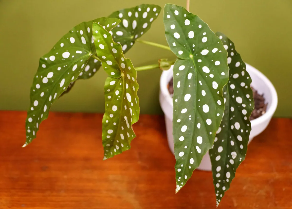 4. Begonia maculata - Znana również jako "Begonia w kropki" ze względu na swoje charakterystyczne, srebrzyste kropki na liściach i unikalny kształt skrzydeł. Begonie są symbolem miłości, szczerości i wdzięczności. Lubią jasne, ale rozproszone światło i wymagają regularnego, ale umiarkowanego podlewania, co sprawia, że są stosunkowo łatwe w utrzymaniu.